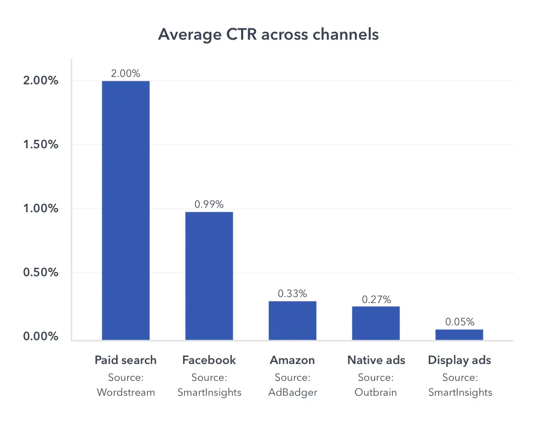 Check out this graph from DemandJump that shows CTRs across popular online channels: