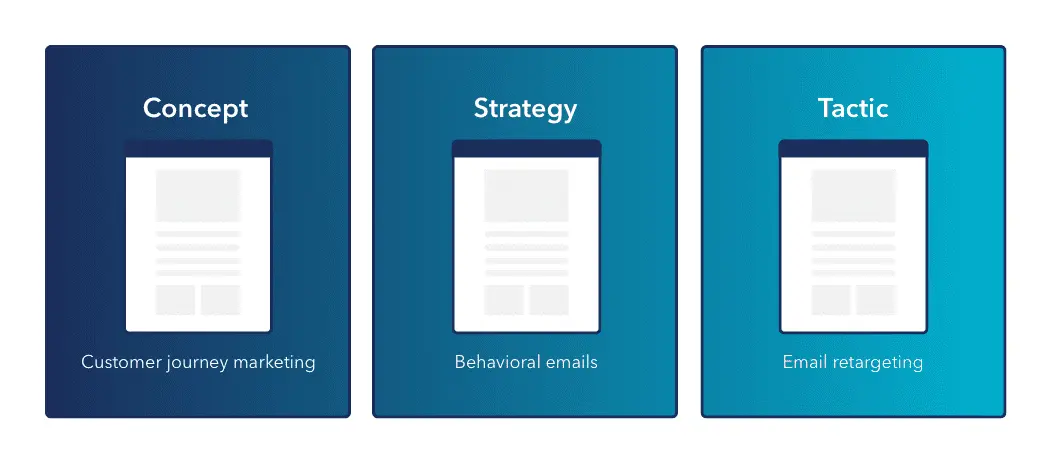 Think of customer journey marketing as the broadest perspective, behavioral emails as a strategy, and email retargeting as a particular tactic.