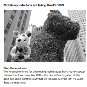 Native Digital, builder of custom mobile apps, is able to pull of an interesting email newsletter without actually creating any content. They curate interesting links from around the web and deliver them without a sales pitch. It’s effective because the 1) links are interesting and 2) it’s a regular reminder about their brand and services.