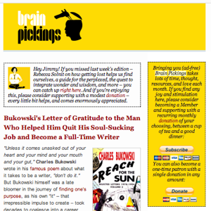 This is Maria Popova’s "subjective lens on what matters in the world and why". Her skilled writing and sharp analysis has earned her more than 150,000 subscribers and 1 million blog visitors each month. It’s been rumored that Maria works as much as 450 hours per month on her labor of love. Whether or not that’s true, the newsletter is one of the best out there.