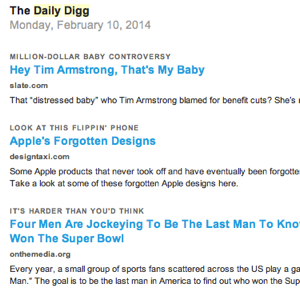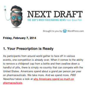 Dave Pell’s daily newsletter embodies the term ‘curation’. He sends you away to bring you back. Dave collects "the day’s most fascinating news" and packages it in a clean, readable digest.