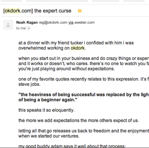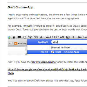 Nathan Kontny’s emails focus on product updates. His app Draft is a popular markdown editor and his emails detail product updates, often using GIFs. He’s a one-man show so his emails chronicle his personal journey as well as Draft’s.