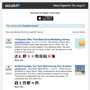 Every Nuzzel email is unique based on your social feeds. This handy tool finds what your friends are sharing and curates the articles into an easy-to-digest email so you don’t have to stress about checking Twitter all day. Check it out to see just how valuable personalized email can be.