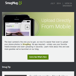 The SmugMug newsletter is a fun read for a few reasons. First, each edition offers valuable tips for using their (awesome) software. Second, it includes tutorials on shooting and editing better photos. And third, it has a referral code in each email so I can make money by referring friends.