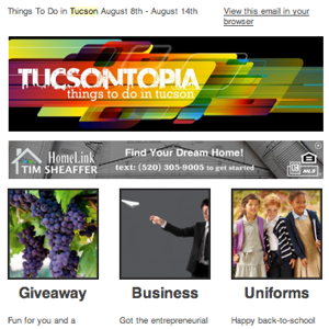 If you don’t live in Tucson, you might not appreciate the value of this weekly email. It contains just about every event and activity in the area. But marketers should take note … this site and newsletter serve an important function for the local community. Even more interesting, the model for the site was inspired by Brian Clark.