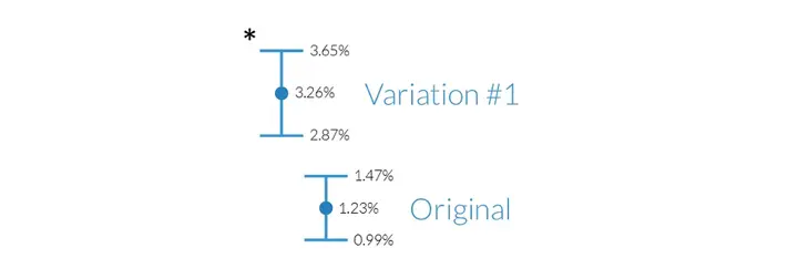 Since the upper limit of the original (1.47%) is less than even the lower limit of the variation (2.87%), we can be confident that variation 1 will outperform the original.
