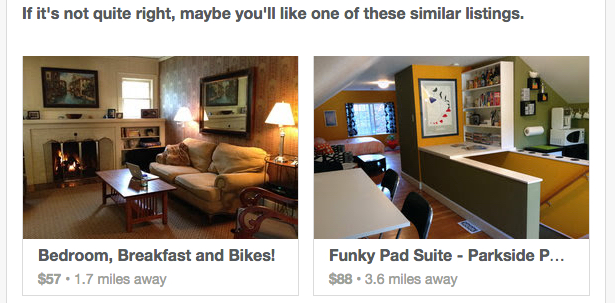 Because they are closely watching my behavior on their site, they know where I want to stay and they know my price range. This means it’s not only safe to offer a "Plan B" but it’s a great way to keep my attention. One of these listings could be the right one. If I click (or don’t click) on these listings, they gather even more data about my upcoming trip.