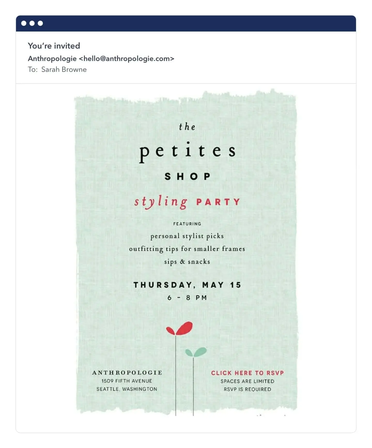 Here’s an example from Anthropologie that relies on location data for personalization.