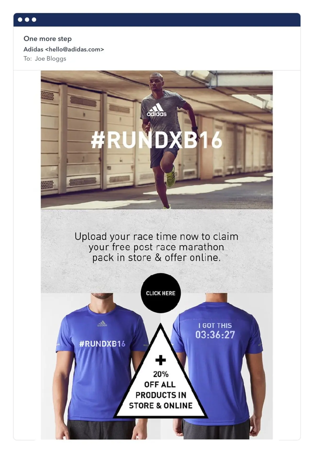 Below you can see an email they sent to a customer who was interested in clothes to wear during a race.