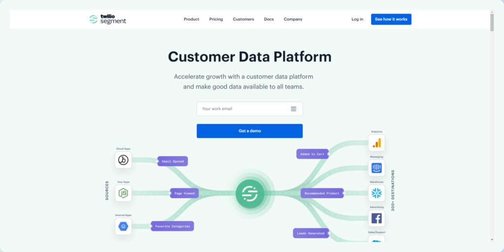 Segment is a great option. It’s perfect for businesses wanting a proprietary CDP that does it all. Its Team Plan allows you to pull in data from unlimited sources and send it to unlimited destinations, but there’s a free trial option, too, if you want to give it a go without committing.