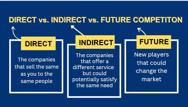 Effective competitor analysis in business and marketing hinges on identifying and categorizing competitors into three key segments – direct, indirect, and future competitors.