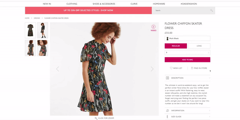 Finally, when shopping online, Oasis customers can choose to pick up their purchases from the nearest store if it’s in stock, which is faster than having it delivered to your home.