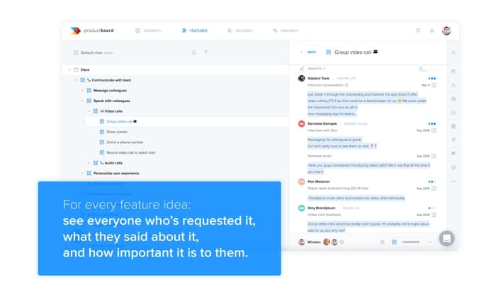 Whether you’re building software, designing tables or crafting a complex customer experience, a system like ProductBoard lets you determine the key features and use cases important to your customers.