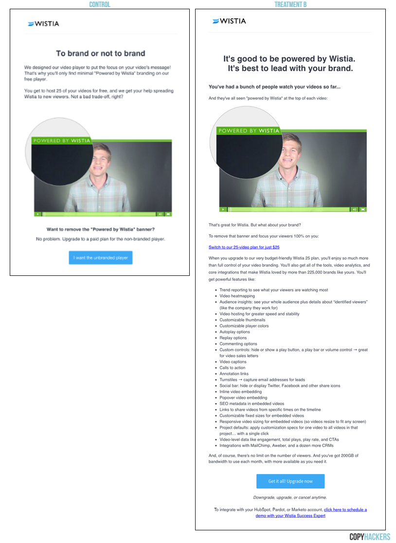 In 2017, Wistia worked with Copyhackers to improve it’s customer onboarding workflow. Through A/B testing their email onboarding campaign, Wistia observed a 350% increase in paid conversions.