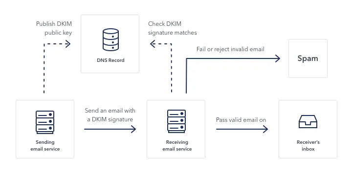DKIM: It stands for Domain Keys Identified Mail. It’s another email authentication protocol that allows email receivers to verify that an email was sent, and authorized by the owner of that domain.