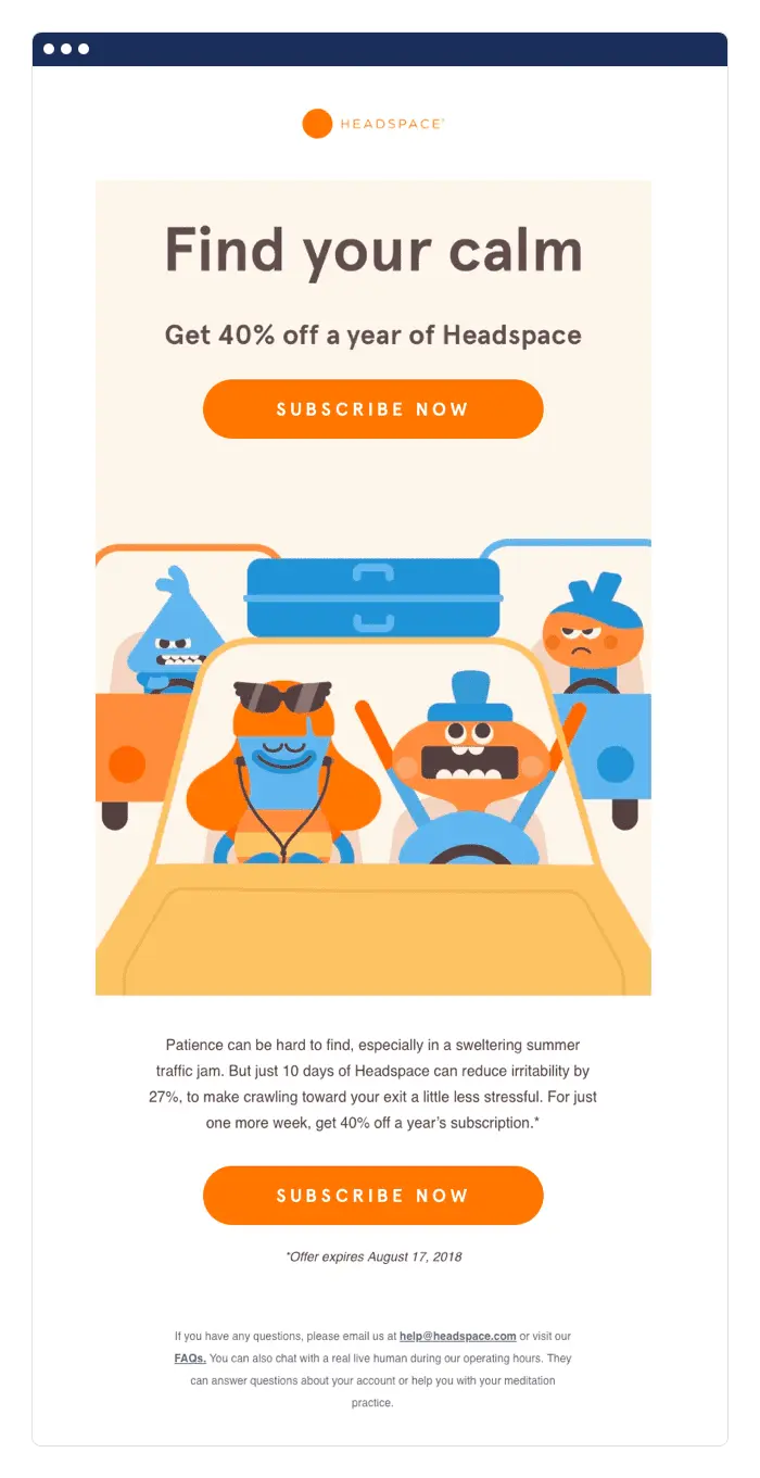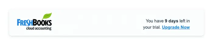 Sometimes you have to apply a little pressure. Using loss aversion tactics such as limited time offers can help users act now, and not later. Simple ways to incorporate this include putting a timeframe on a discount, just like Calm did. You may have also noticed that FreshBooks maintains a countdown in each free trial email to let you know how many days are left.