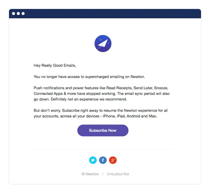 Newton’s trial expiration message tells users that they’ve lost access to some features, and that access to others is limited. As long as a person renews, though, their information and features will return to normal.