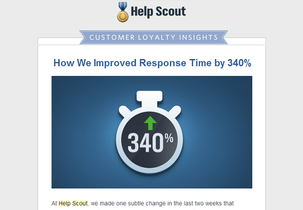 In contrast, B2B and sales offers are usually much more effective if they feature one or fewer images. Take this great example from the team over at Help Scout, which helped them achieve a “double-digit percentage increase in click-through rates”:
