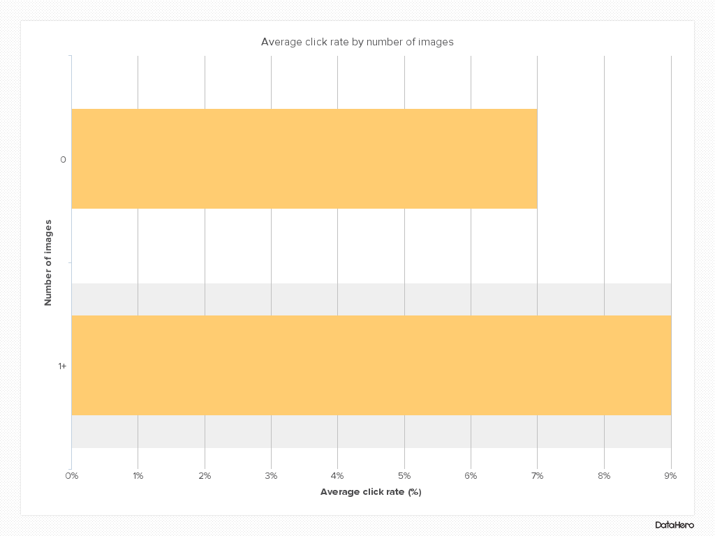 … but this doesn’t tell us too much. What’s really interesting is when we break down the click rates by the number of images in a campaign. When we break it down like this, we get the following results:
