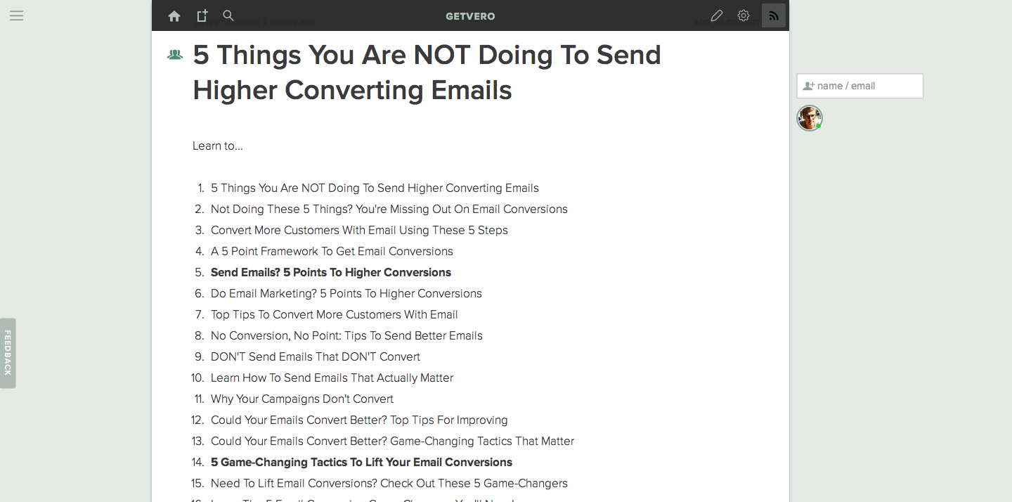 When you think about it, you spend way more time thinking about your problem area than 99.9% of the people you’re emailing. This is YOUR area of expertise, virtually guaranteeing that you’ll always have something great to say to your customers if you simply share your knowledge.