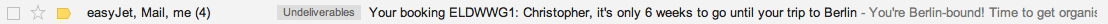 Another great example comes from EasyJet, who use the flight booking reference as part of the subject in this marketing email to make customers feel as though the message is imperative for them to open.
