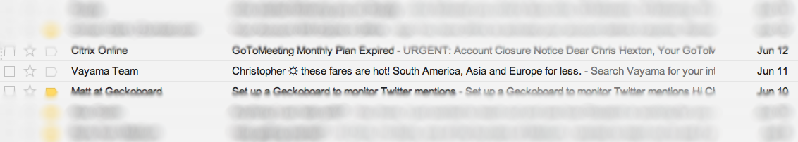 Here is what an email subject line looks like in a Gmail inbox: