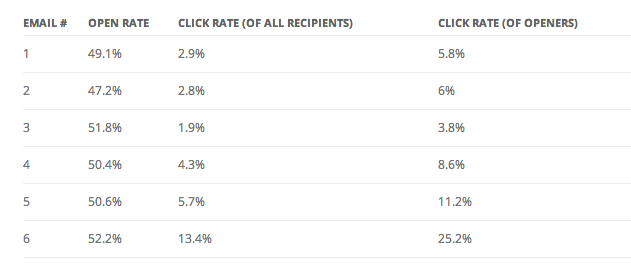 This helps improve your open and click rates as your series campaign progresses. Here’s a great example of the success you can achieve from Kareem over at SocialWOD.
