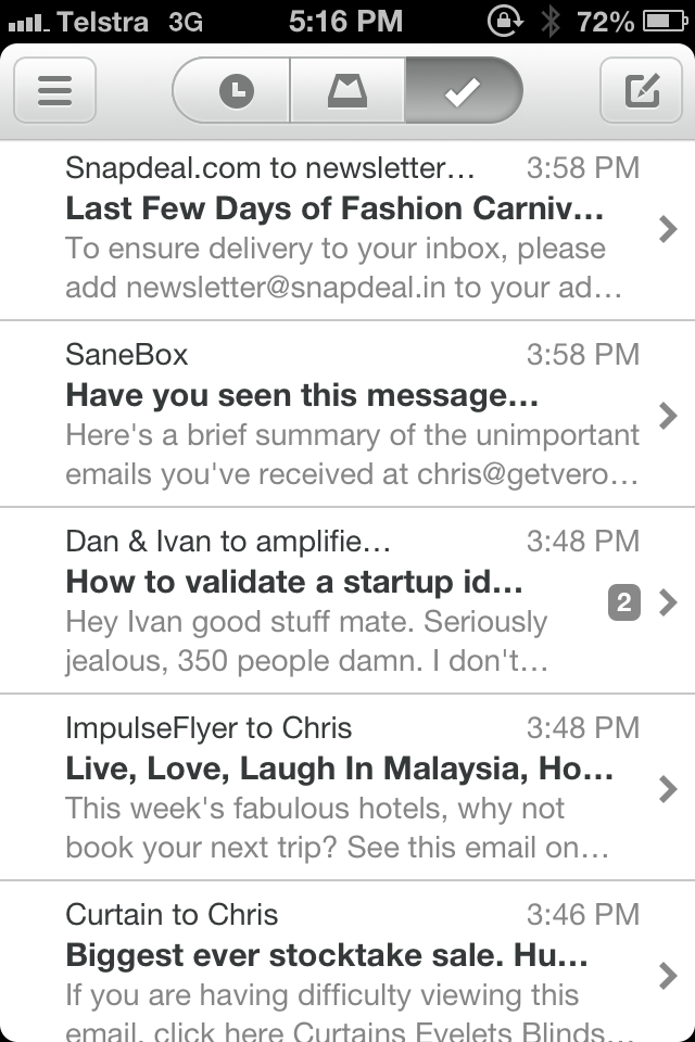 …here is what an email looks like in the iOS app Mailbox.