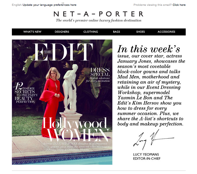 Despite being in a totally different business, Net-a-Porter‘s digital newsletters (called ‘The Edit’) are fine examples of email campaigns that give the reader a ton of great information in a package that is relevant and powerful.