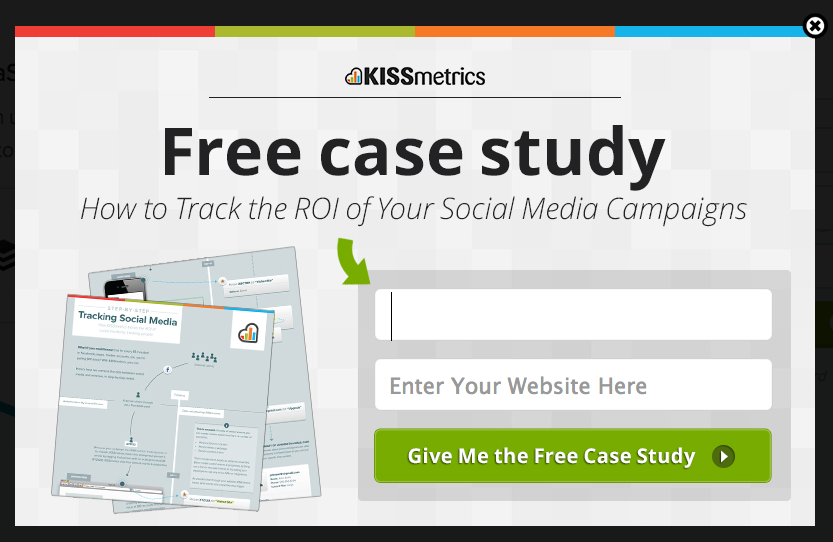 KISSmetrics show how it’s done by targeting visitors that are about to bounce with this popup form:
