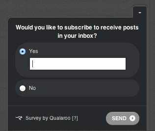 Qualaroo is a simple product that makes it easy to ask questions of visitors on your site and to be specific about it. Using their Nudge feature you can create a step-by-step survey that engages visitors and then asks for their email address.