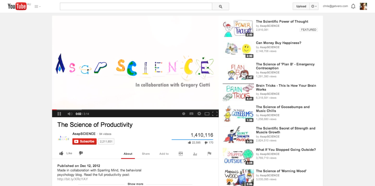 Gregory Ciotti shared how he partnered with YouTube channel “The Science of Productivity” to produce a video that linked back to his great blog SparringMind. This was extremely successful, garnering thousands of new subscribers in less than a week.