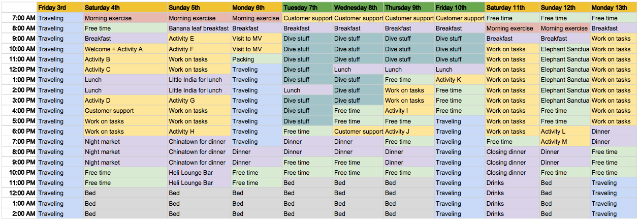 Below I’ve published our schedule along with every activity we completed as a team for you to use as inspiration (or use wholesale if you want to) for your next team retreat.