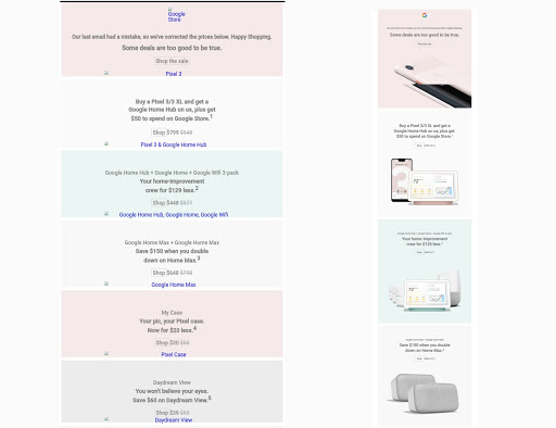To ensure this doesn’t happen, take image blocking into consideration. Here’s the email from Google with and without image blocking.