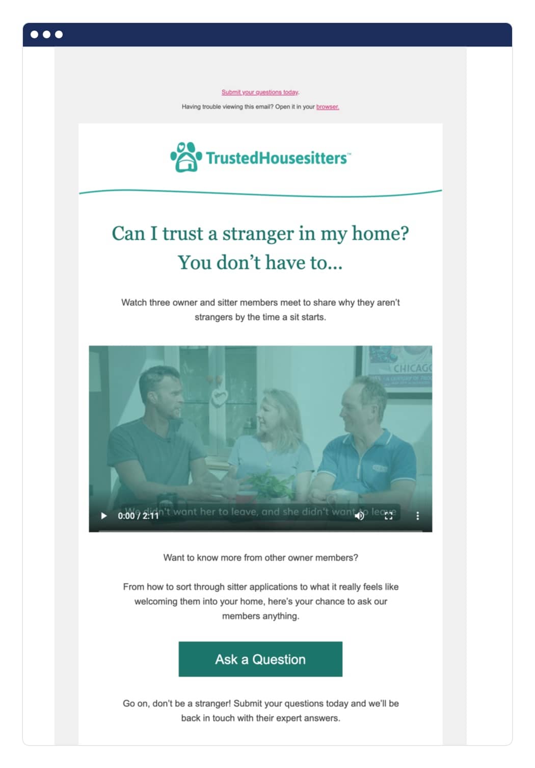 Therefore, they used a lead nurture email to educate leads about the housesitting process from the perspective of actual customers.