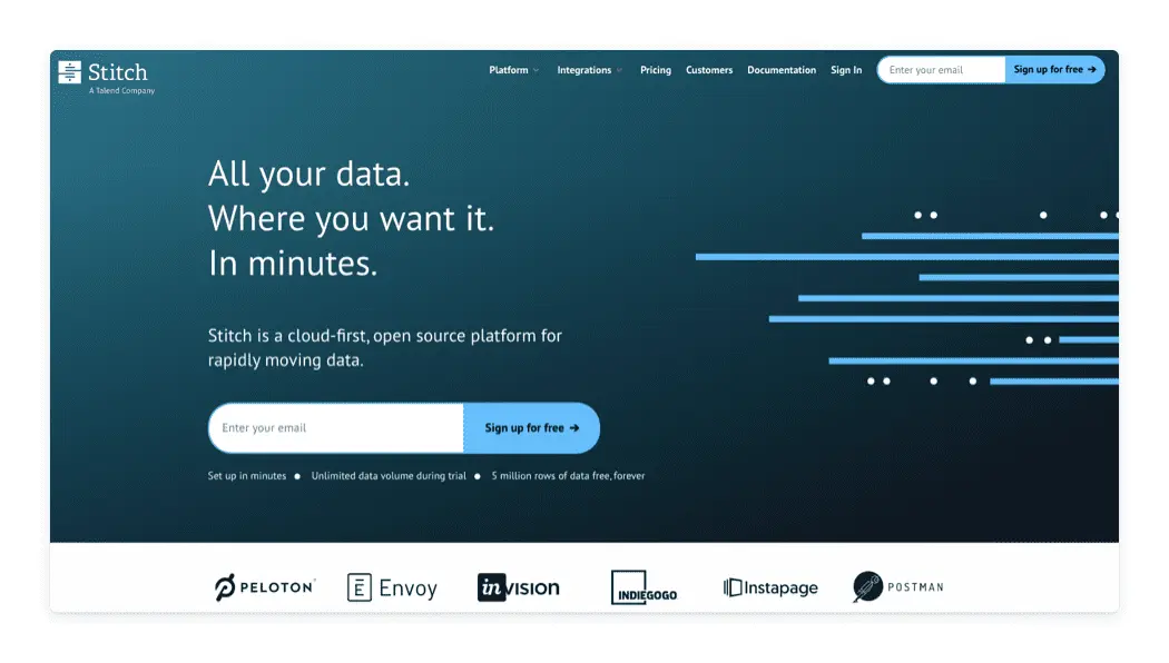 Stitch is an open-source platform to help teams connect their data sources and favorite analysis tools.