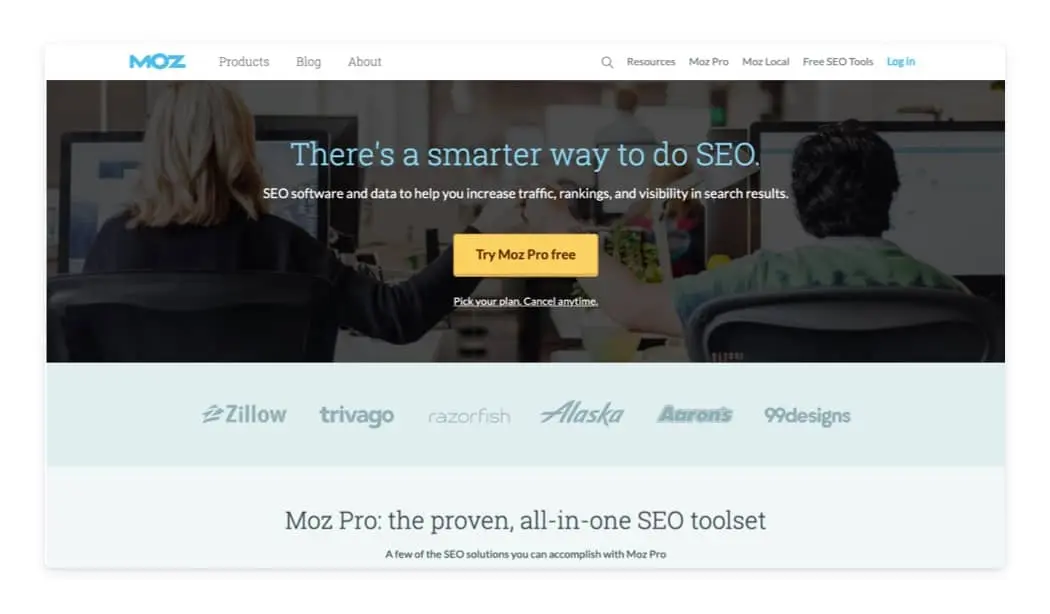 Moz has a collection of SEO tools for do-it-all keyword research, businesses focused on local traffic, or organizations ready to adopt APIs. Pricing starts at $99 a month. Like many other SEO tools, Moz has free resources to learn the ins and outs of increasing traffic.