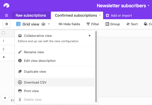 We created an Airtable base called “Newsletter subscribers” and