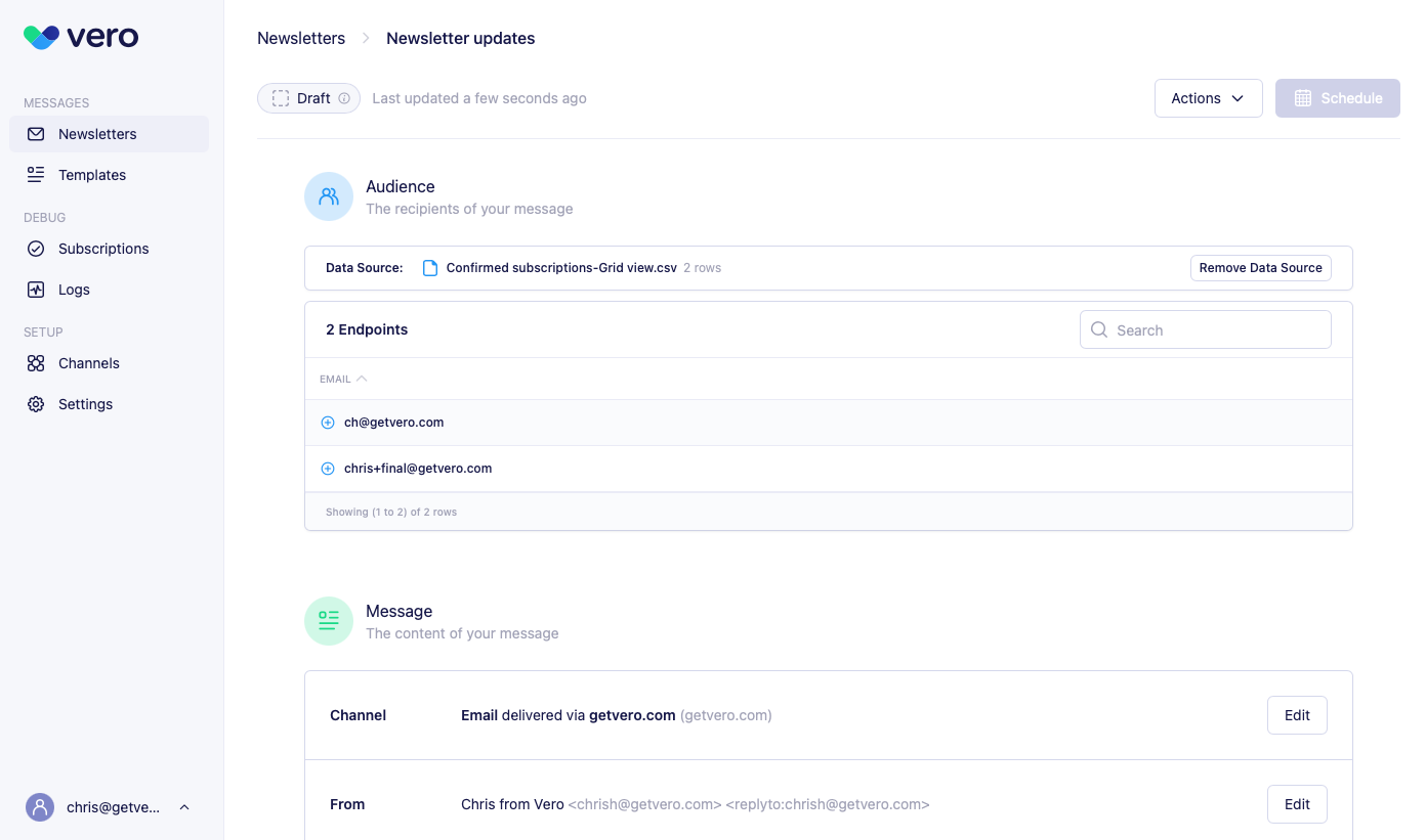 …then creating a new Newsletter in Vero and importing it: