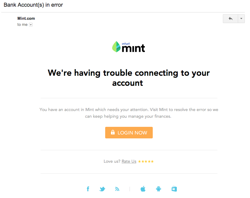The strategy also gives Mint breathing room to send other emails. They send a mix of product updates, content and retention emails like the one below.