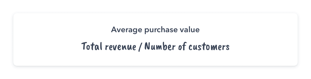 For example, imagine your revenue last year was $1,000,000 and you had 10,000 unique customers. That means your average purchase value is $100.