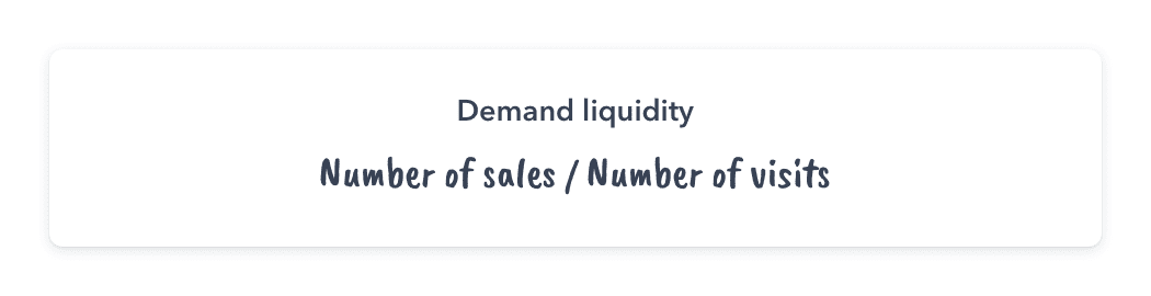 If your marketplace works with bids, you should analyze the average number of bids per buyer. When a bidder is new to a marketplace, they’ll likely start with a lower number of bids. However, as trust increases and each buyer places more bids, you’ll need less buyers per seller to complete a transaction.