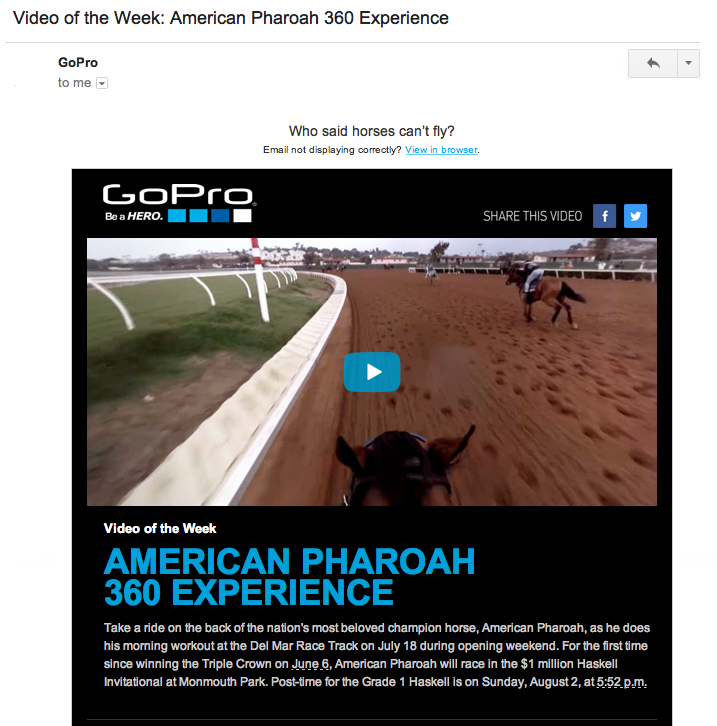 Each week, GoPro sends a newsletter with a featured video. Those videos are shot by people they sponsor, which draws interest from GoPro enthusiasts as well as fans of those athletes and celebrities.