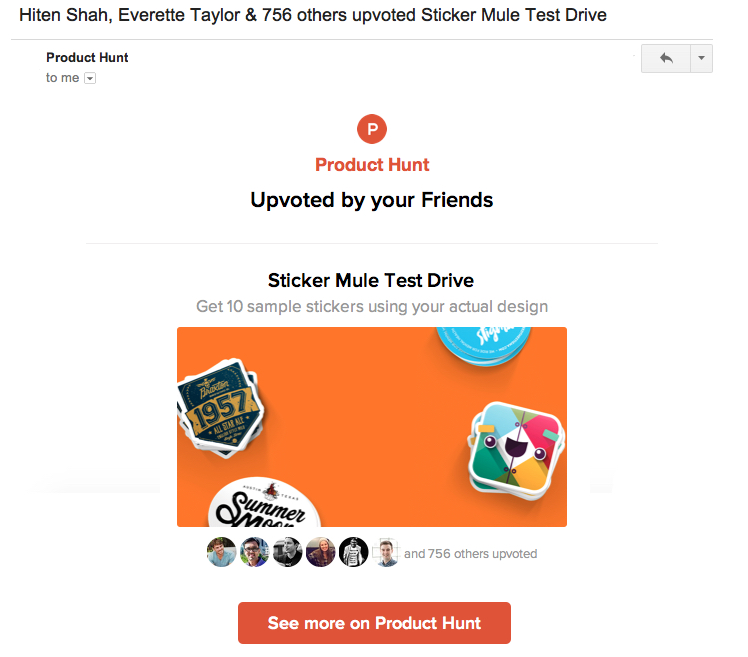 Product Hunt has always used social proof in their daily newsletter but recently doubled down on the strategy by sending notifications like the one below.