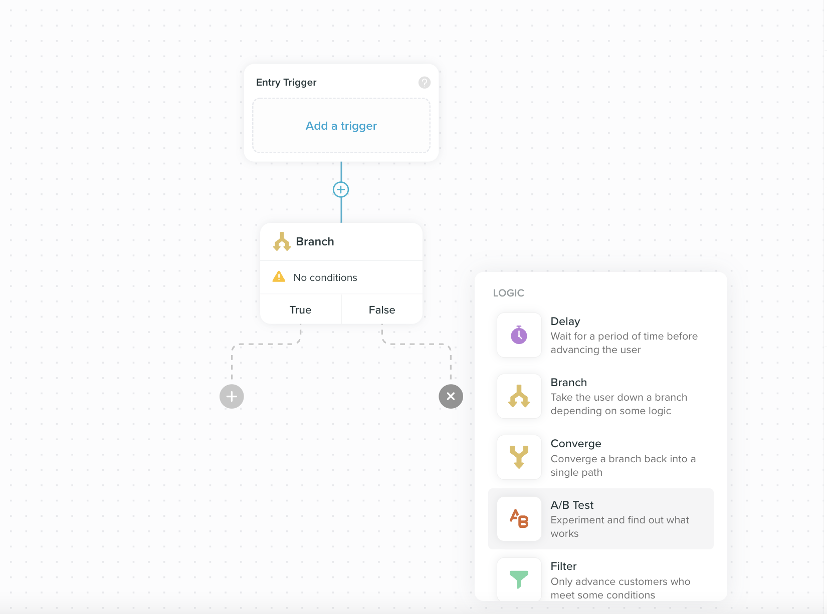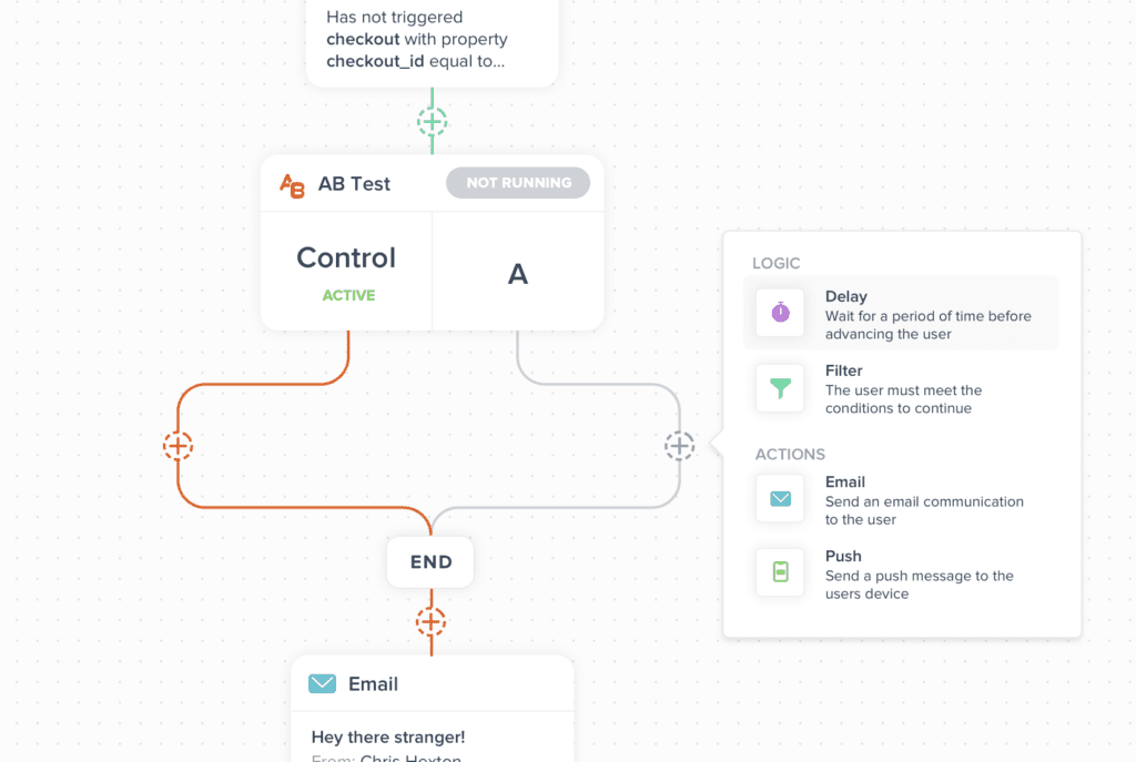 To run an effective A/B test, split your audience into two segments and create two different versions of a message or workflow; option A and option B. Then set a goal, so when the test has run its course, you’ve got a clear measure of success. For example, if your goal is to promote a new product, your measure would be revenue.