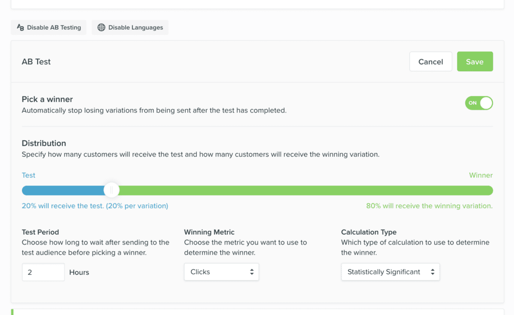 A/B testing with a conversion goal takes your test to the next level. Beyond comparing open and click results, you’re able to directly link your campaigns to actual business outcomes and identify which variation performed the best.