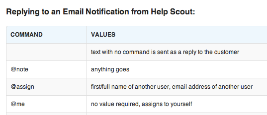 Another example comes from Help Scout. Help Scout is an ‘invisible helpdesk’. This means a lot of customers leverage email heavily in their Help Scout workflow, responding to tickets directly from their inbox as opposed to logging into Help Scout. There are two convenience features that Help Scout has built that show they care about the details. The first is a series of commands you can use when you respond to helpdesk tickets directly from your inbox. These are commands that allow you to close and re-assign tickets without ever opening Help Scout, saving users heaps of time.