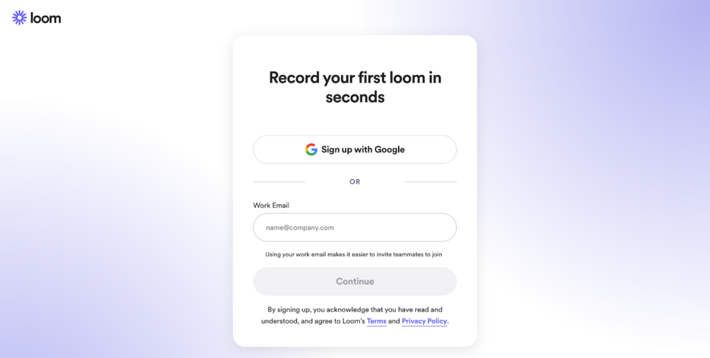 Plus, if you use your company address and they already have a workspace, Loom will link you to it.
