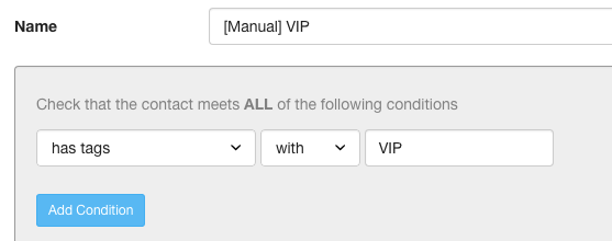 - Follow your data. Use segmentation when possible to make your messages more targeted and relevant. Group subscribers by their customer segment, how long ago they lapsed, or how engaged they were previously. In the example below, there’s a “VIP” user segment of highly-engaged customers.